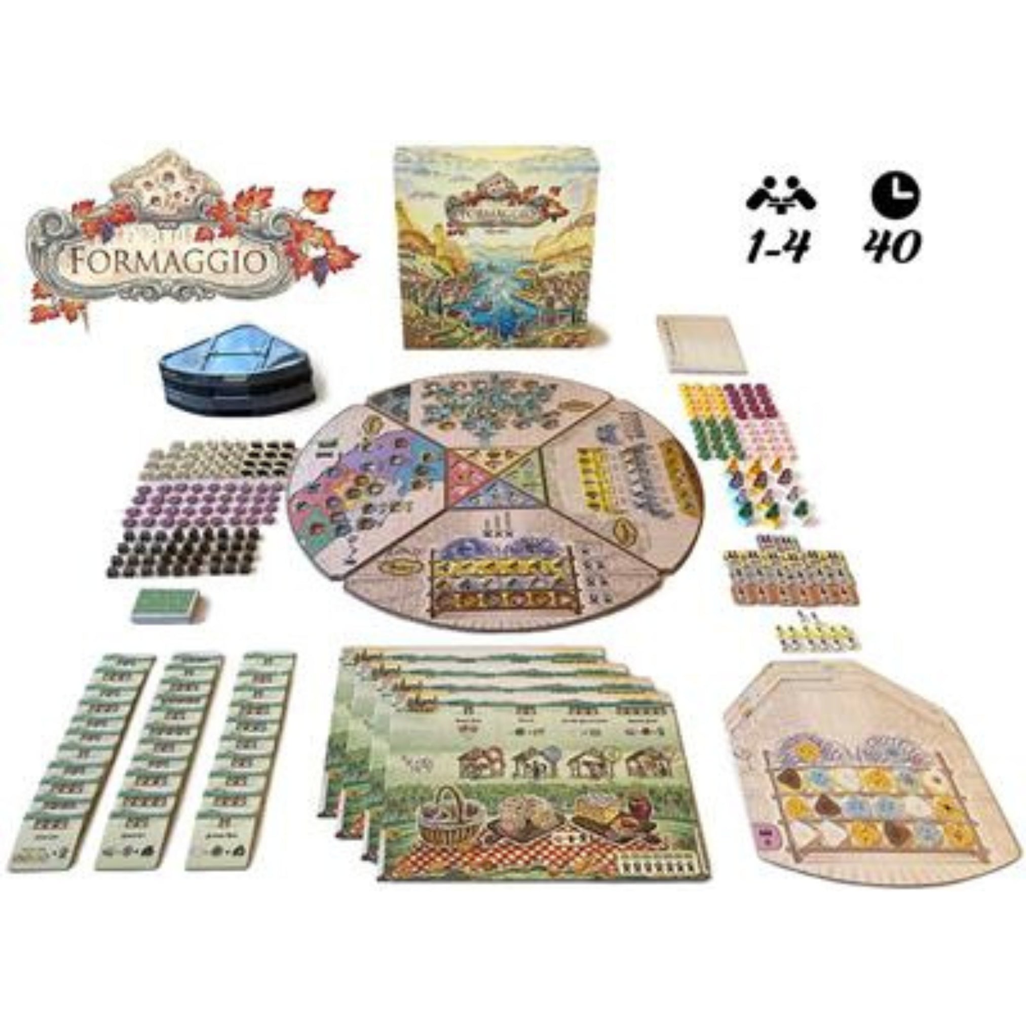Formaggio is a standalone expansion for Fromage . By combining both games, you can randomly create four board quadrants and draft any combination of structure tiles, providing more variety and multiple routes to victory.